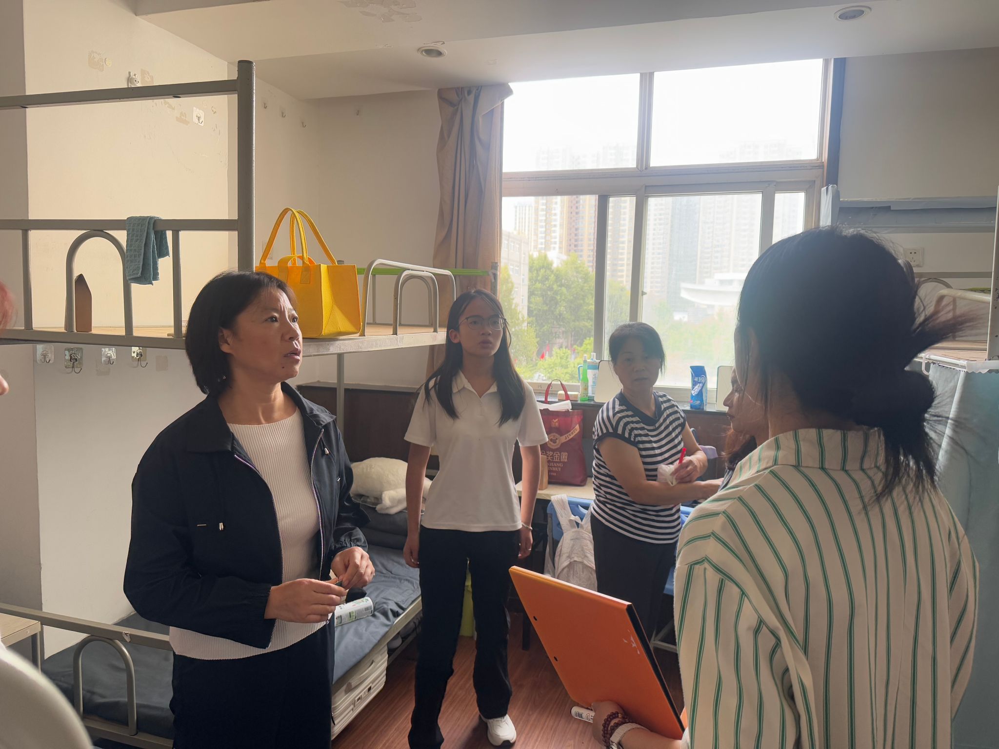 每到一个宿舍,陈老师都亲切地与新生交谈,仔细询问同学们来自哪里、是否适应学校环境、宿舍设施是否完好等。