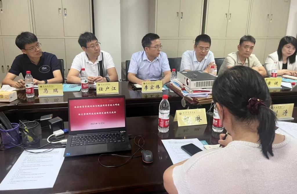 为进一步深化学习贯彻习近平新时代中国特色社会主义思想主题教育,坚持围绕中心、服务大局,把调查研究与学科发展结合起来,运动与健康科学学院坚持开放办学思路,积极拓展办学资源。7月12日,运动与健康科学学院与碑林环大学硬科技创新街区座谈交流会在实验楼五楼会议室召开。运动与健康科学学院院长刘涛,教学实验医院院长何昌谋,体育装备工程研究院执行院长潘玮敏,运动与健康体检中心副主任郝琳,碑林环大学创新产业带管委会主任林原、西安先华医院有限公司董事长黄健,西安交大机械学院/西安交大-米兰理工联合设计学院副教授李宏伟,西安创新设计研究院有限公司副总经理陈勇等17等人参加会议。座谈交流会由刘涛主持。