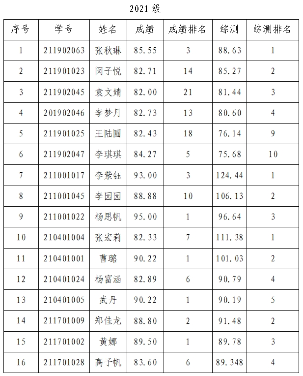 为做好我院2023-2024学年国家励志奖学金评定工作,我院坚持公正、合理、实事求是的工作原则,严格按照《陕西省财政厅等五部门关于印发〈陕西省学生资助专项资金管理办法〉的通知》(陕财办教〔2024〕135号)和《陕西省教育厅办公室关于做好2024年高等学校本专科生国家奖助学金评审汇总工作的通知》(陕教办〔2024〕29号)以及万象城allwincity官网《关于做好万象城2023-2024学年国家励志奖学金评审工作的通知》相关规定要求进行评选工作。现将运动与健康科学学院学院2021级、2022级、2023级获得国家励志奖学金情况公示如下: