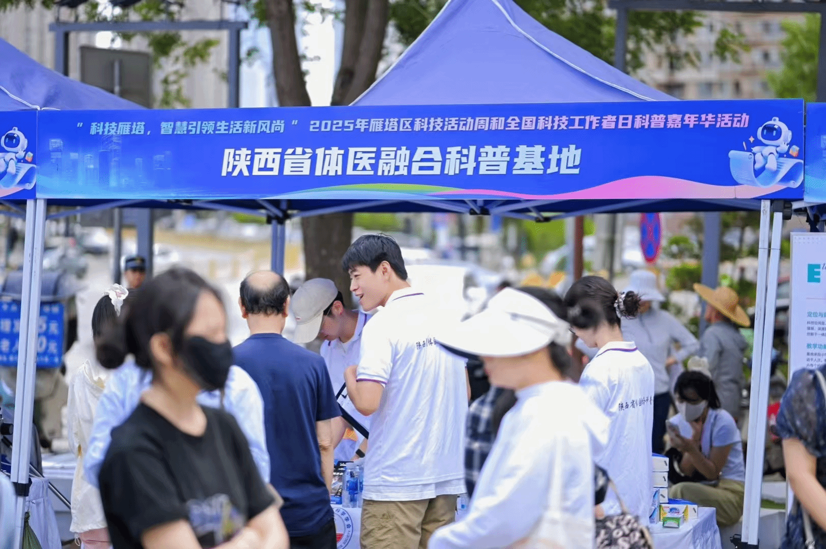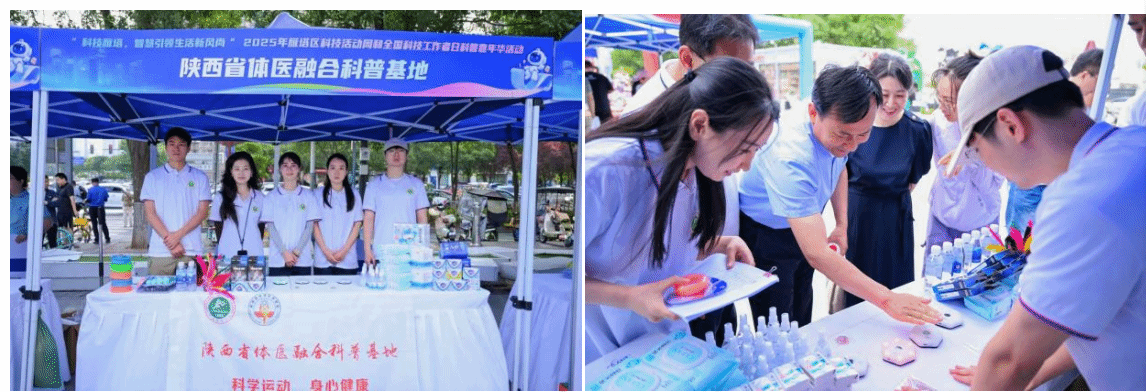5月23日至24日,2025年雁塔区科技活动周暨全国科技工作者日科普嘉年华在西安市雁塔区M3碧乐城室外广场盛大举办。陕西省体医融合科普基地依托万象城运动与健康科学学院,由范育、宋博雅、马新颖等三位青年教师及运动人体科学专业硕士研究生团队共同策划,携“健行有礼”——体医融合科学健身互动展区亮相活动现场,为市民提供了一场科技与健康融合的沉浸式科普体验。