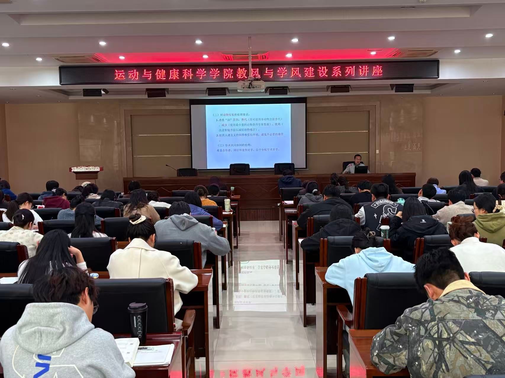 随后,苟波教授围绕“体育科研学术规范”开展专题讲座。讲座中,苟教授不仅系统讲解体育科研领域的学术诚信准则、科研项目申报与实施流程规范、研究成果发表的核心要求等关键内容,还结合自身科研实践案例分享经验,并设置互动交流环节,针对师生在体育科研中遇到的规范疑问逐一解答,切实帮助参会者提升学术规范认知与实践能力。