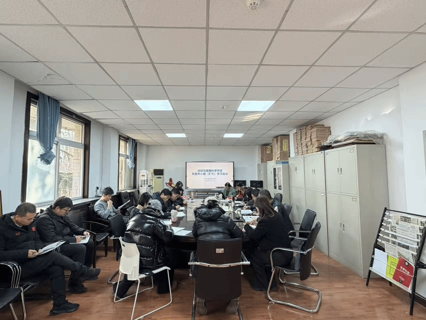 12月17日下午,运动与健康科学学院召开党委中心组(扩大)学习会议暨巡察整改动员部署会。学院领导班子成员、各教研室主任、党支部书记、科级以上干部、全体辅导员、学科带头人、专业负责人、教师代表参加会议。会议由学院党委书记张鹏华主持。