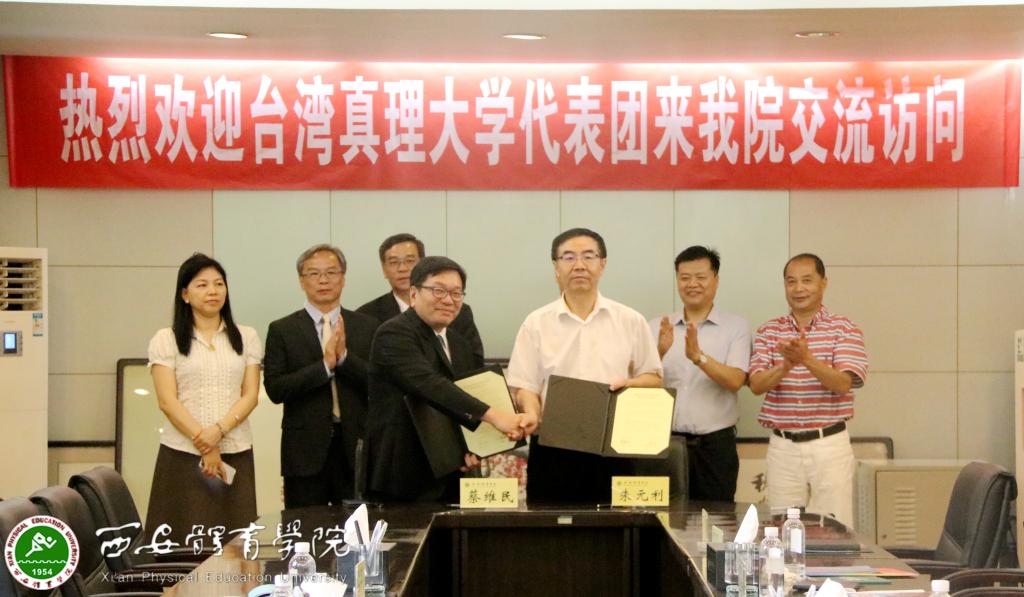 朱元利对蔡维民一行人的来访表示热烈欢迎,随后他介绍了我院的发展概况、专业建设、人才培养等方面情况,并从运动与健康促进、体育经济与管理、体育法治理论与实践、体育教育理论与实践研究和医体整合五个方面,向台湾真理大学的同仁们阐述了我院近期教育教学研究的发展方向。蔡维民对朱元利的热情欢迎表示感谢,同时介绍了台湾真理大学的基本情况和近期的发展情况,希望与我院从学生短期交流项目、寒暑假交流项目及教师互访交流项目三个方面着手合作。之后陈天赐、郑俊杰分别介绍了真理大学的相关教学科研情况。