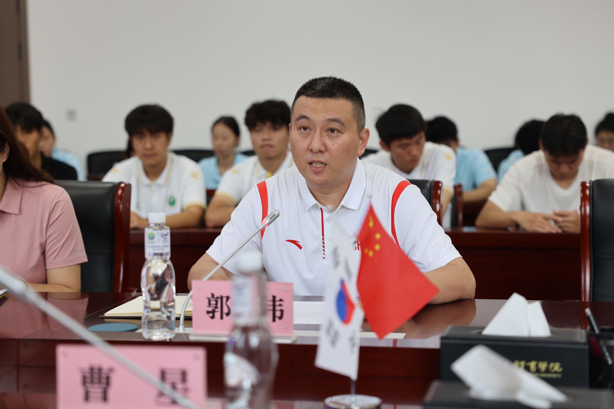 座谈会上,国际交流与合作处副处长郭伟系统介绍了学校发展规划,着重阐述了以体育教育为根基、推进多学科融合发展的办学思路,并详细展示了特色学科专业建设的创新成果与实践路径。在学生培养方面,分享了“体教融合”背景下的特色育人模式;在教师发展方面,介绍了师资队伍建设的有效举措。丰富的内容与创新理念,全面展现了学校在教育领域的探索与突破。