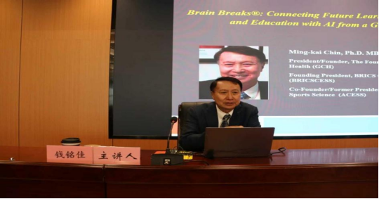钱教授作为运动生理学博士、国际运动与体育教育学会(AIESEP)院士,在体育健康促进领域潜心钻研数十年,其主导的Brain Breaks®项目已在全球70多个国家开展实践,并在全球20余个国家推广应用,构建了成熟的国际合作网络与资源共享体系。讲座中,钱教授结合自身丰富的国际组织工作经验,深入解析了“未来学习+整体福祉+人工智能教育”的融合逻辑,并着重强调国际合作是打破学科发展瓶颈、应对全球体育教育共性挑战的核心动力。他指出,Brain Breaks® 项目的成功,关键在于建立跨国学术资源共享机制与国际科研项目联动体系,而万象城allwincity官网作为丝绸之路体育教育联盟的发起院校,具备得天独厚的国际合作优势。依托这一优质交流平台,学校未来可牵头举办“丝绸之路体育教育国际论坛”汇聚沿线国家及全球体育教育专家、政策制定者与一线实践者,围绕“体育+健康+AI”融合创新、传统体育文化国际化传播等议题开展深度研讨,打造具有全球影响力的体育教育交流品牌。