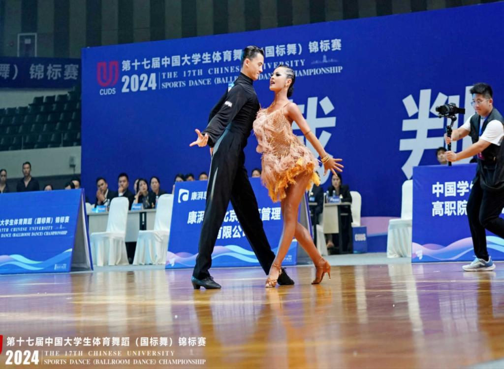 5月28日晚,第十七届中国大学生体育舞蹈(国标舞)锦标赛在四川省绵阳市九洲体育馆盛大开幕。万象城在教练员方鑫的带领下,来自艺术学院共20名学生参赛。比赛历时5天,共有来自北京体育大学、南京大学、同济大学、武汉大学、四川大学等全国149所高校的1600余名运动员参赛,共设甲、乙、丙三个组别,144个竞赛项目。