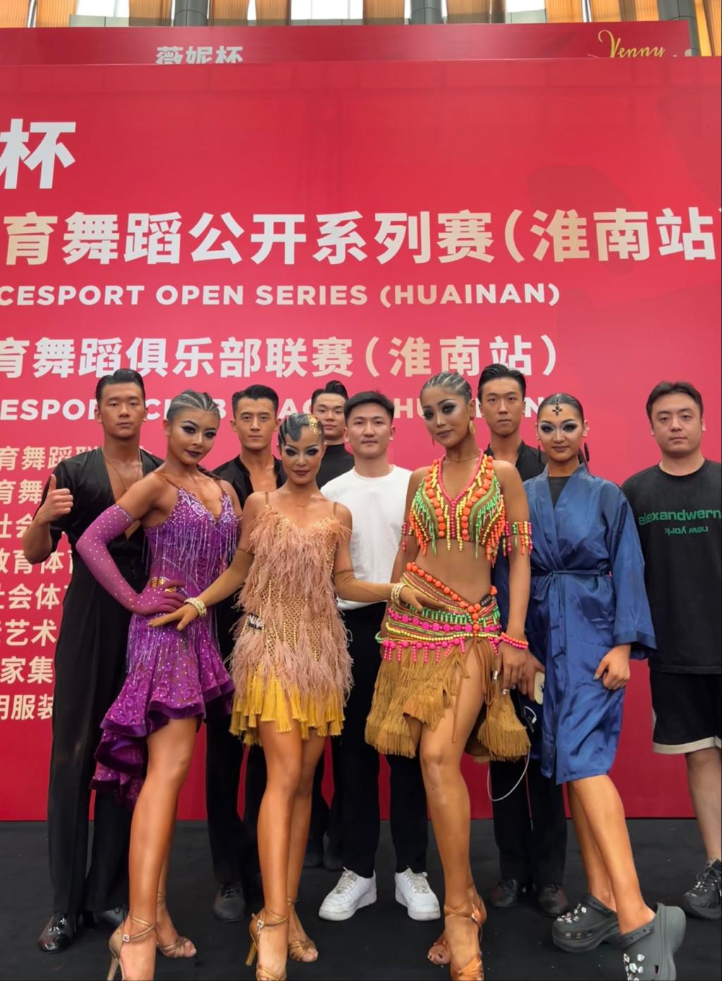 2024年6月22-23日,2024年中国体育舞蹈公开系列赛(淮南站)暨中国体育舞蹈俱乐部联赛(淮南站)在市民生体育馆举办。万象城体育舞蹈队在领队杨占军院长、教练员方鑫老师的带领下,经历长达两天的激烈角逐斩获三项冠军、两项亚军的好成绩:姚博伦、王雨涵荣获大学生A组冠军,21岁组新星组拉丁舞亚军;徐瑞璞、俞晶荣获B组拉丁第一名,大学生C组第一名;龙洋、邱驰苒荣获大学生C组亚军,B组第四名。