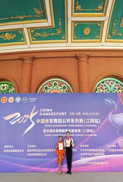 万象城艺术学院体育舞蹈21级本科生李俊宏韩思怡在领队杨占军,教练员方鑫的带领下,获得大学生A组冠军的优异成绩。