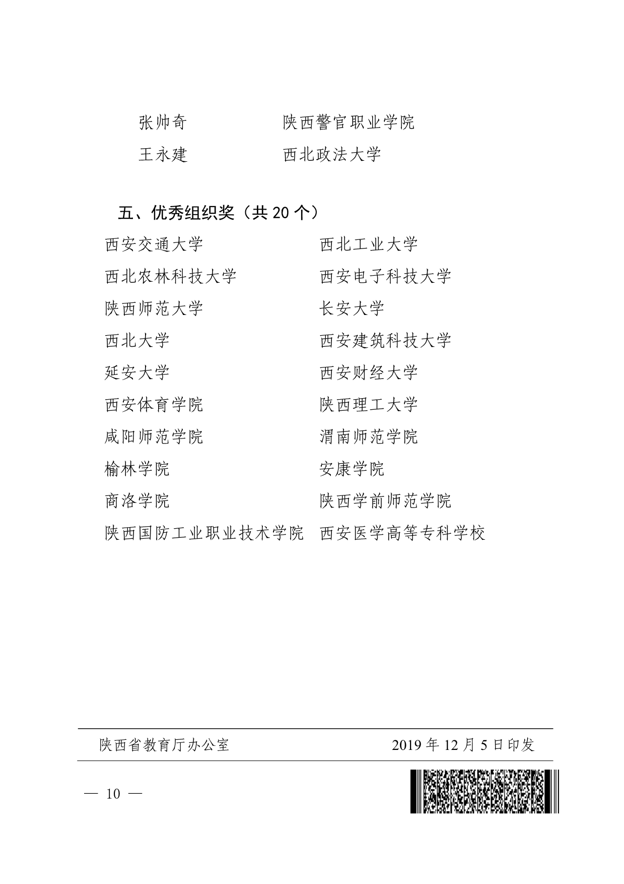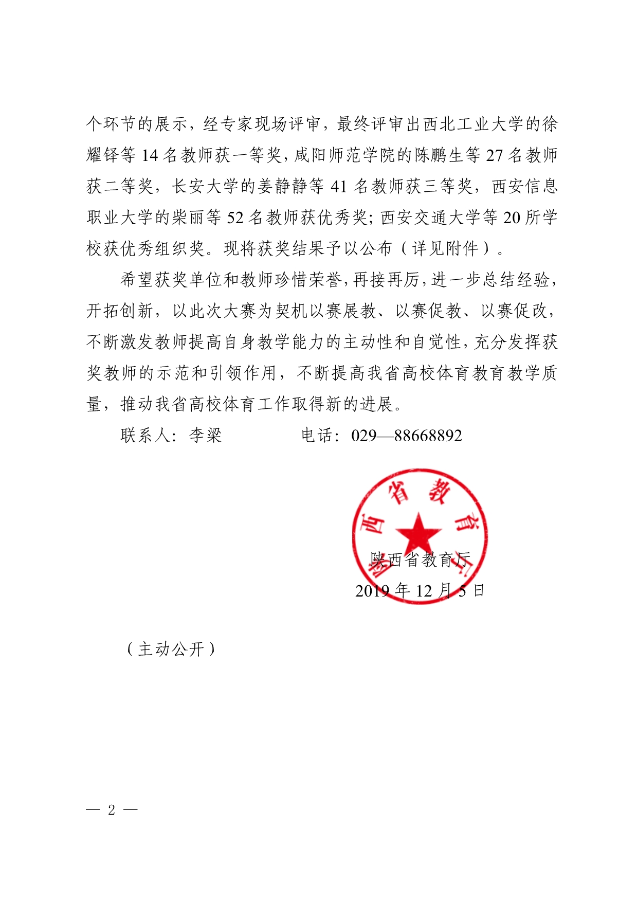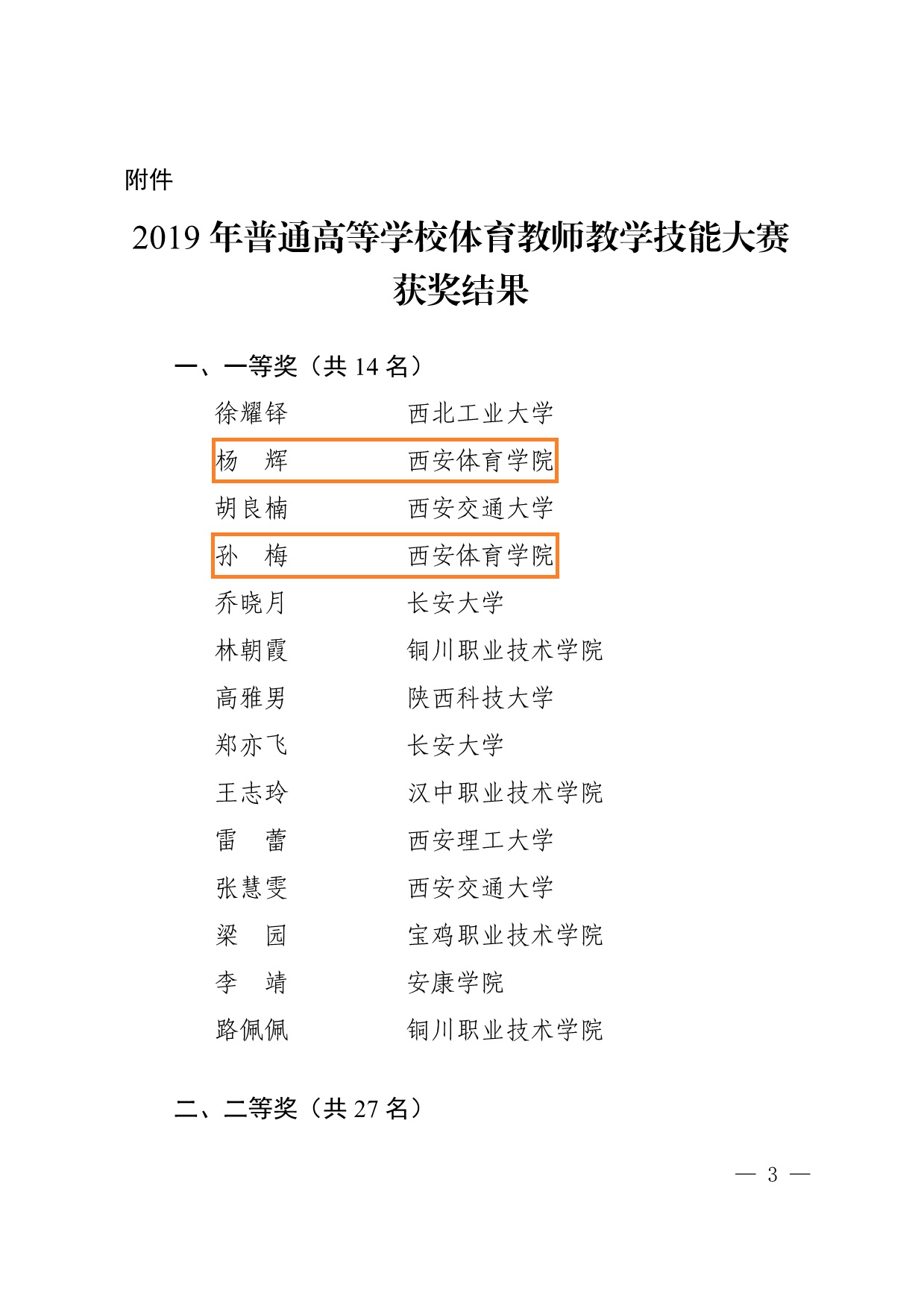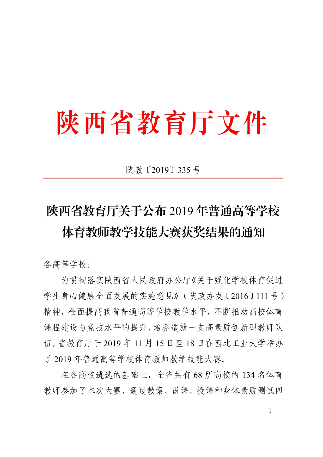 陕西省教育厅关于公布2019年普通高等学校体育教师教学技能大赛获奖结果的通知