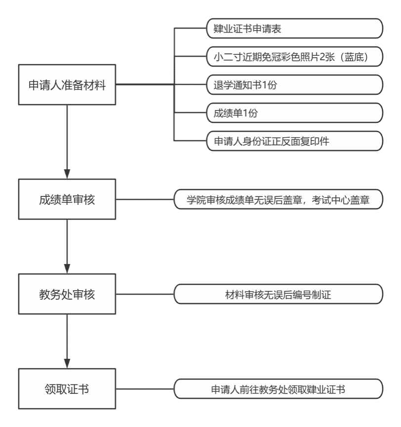1. 对在校学习一年以上退学且未达到结业所需学分数的学生,可在退学通知落款日一年内申请肄业证书;
