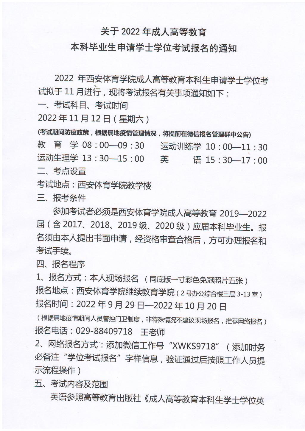 关于2022年成人高等教育本科毕业生申请学士学位考试报名的通知
