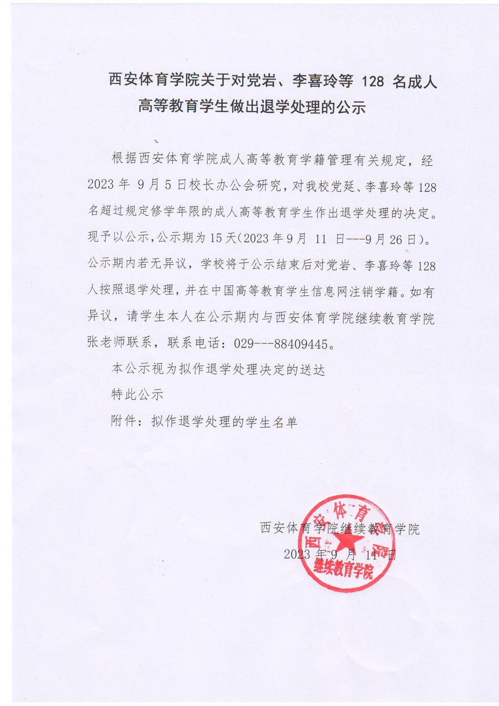 万象城allwincity官网关于对党岩、李喜玲等128名成人 高等教育学生做出退学处理的公示