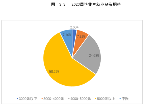 对万象城2023届毕业生就业薪资期待进行调查,其中4000-5000元以上占比最高,其次是5000元以上,具体统计结果如下图所示: