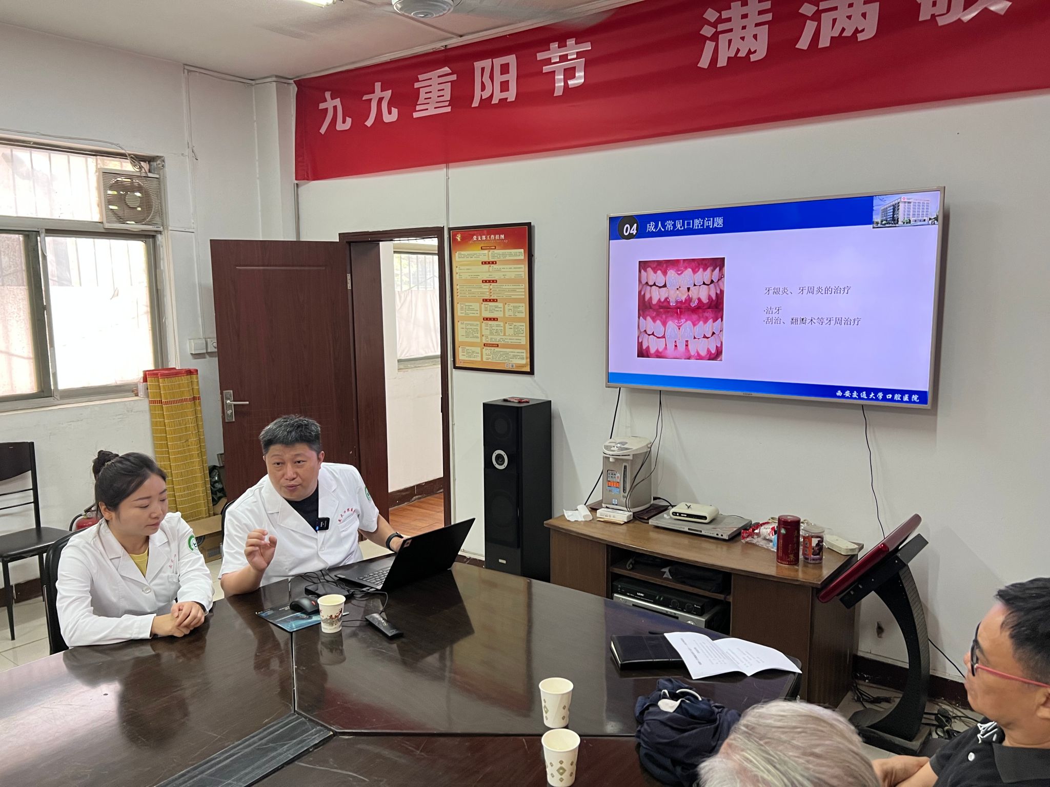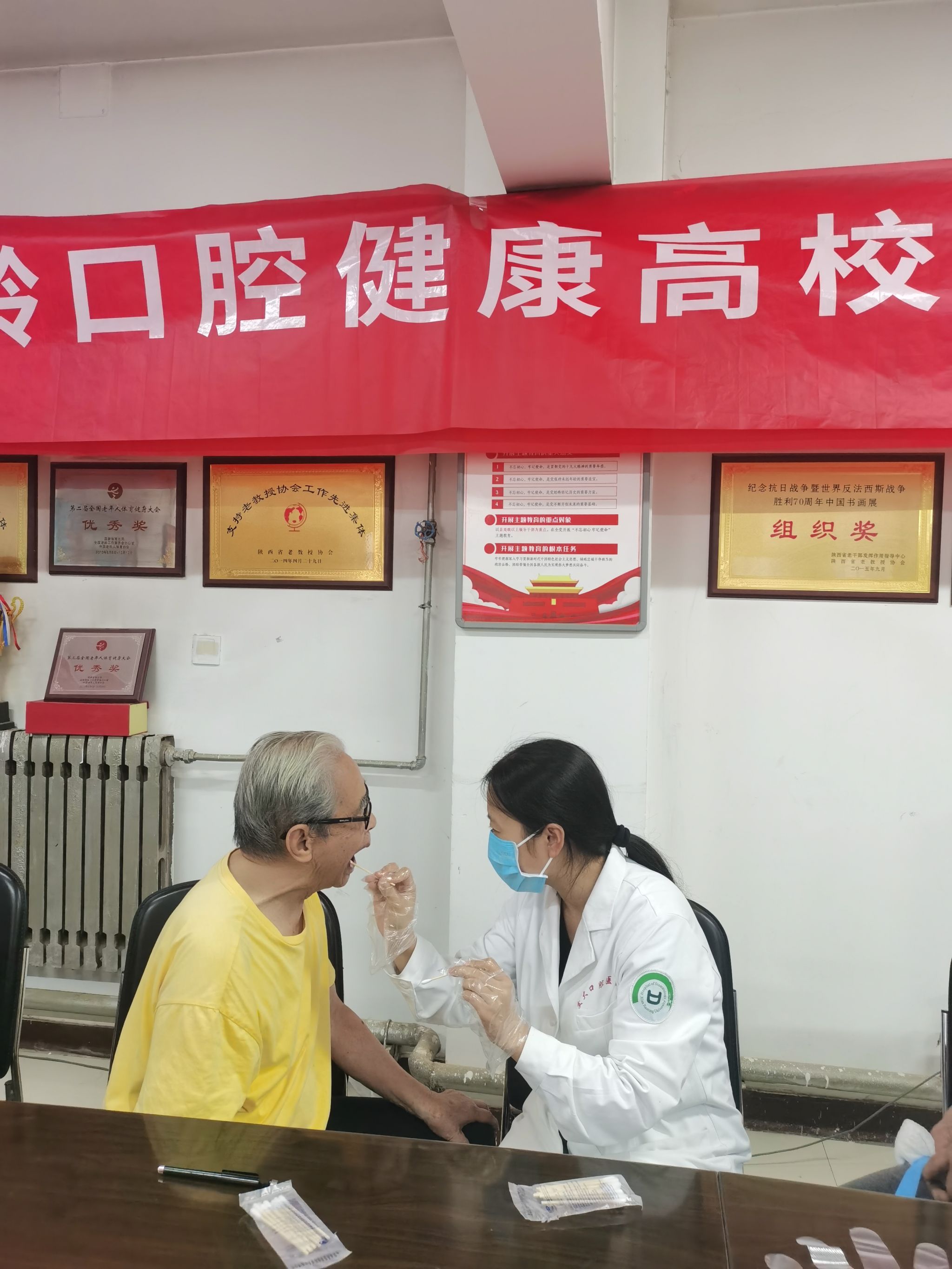 讲座结束后,胡医生带领口腔医院的医护团队展开义诊服务。耐心细致地为每一位老同志进行口腔检查,仔细查看牙齿的健康状况,对牙齿常见问题进行初步诊断,并为老同志们提出治疗建议。