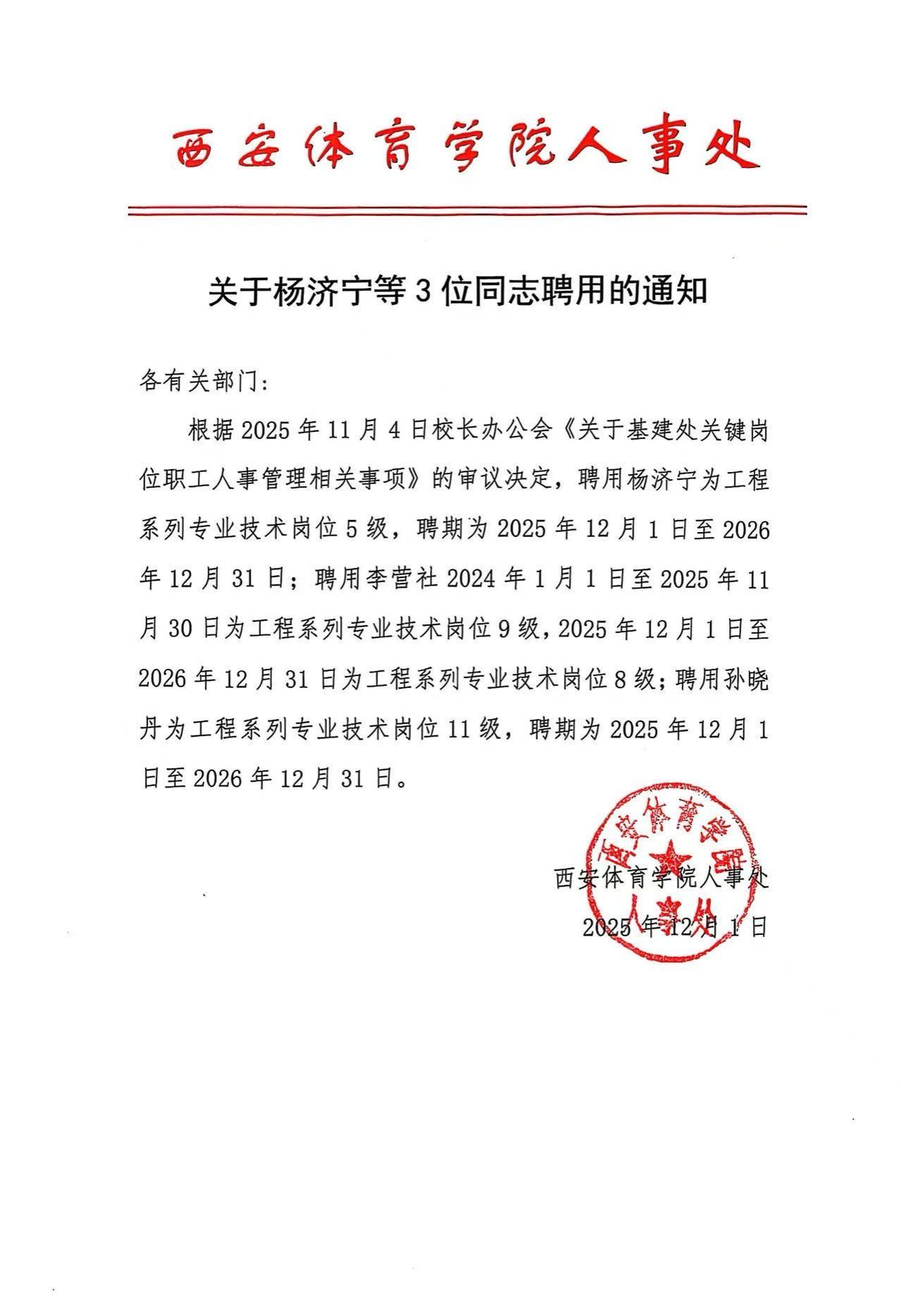 关于聘任孙西军和杨凯2位同志担任高级工...