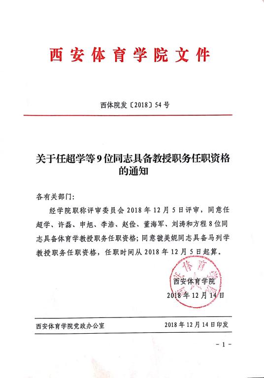 关于任超学等9位同志具备教授职务任职资格的通知