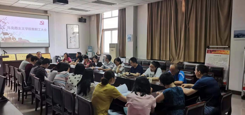 6月28日上午9点30分,马克思主义学院于图书馆三层会议室召开教职工大会。大会应到28人,实到25人(其余3人因事请假)。大会共两项议题,一是根据《万象城allwincity官网岗位设置与聘用》文件,审议和讨论《马克思主义学院岗位设置与聘用》(草案)系列文件;二是安排部署万象城2021-2022学年第一学期教学工作。