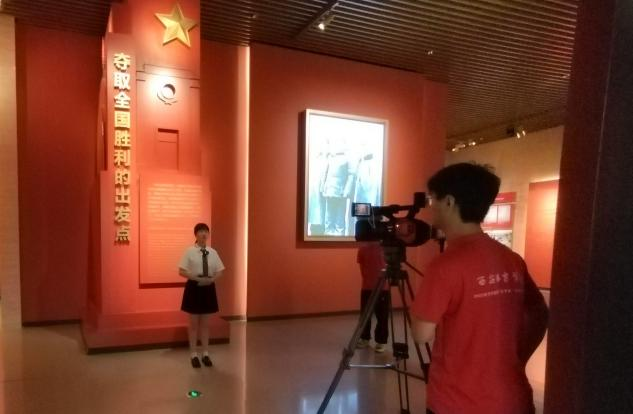 图为实践团队成员在杨家岭革命旧址录制视频,讲述红色故事。