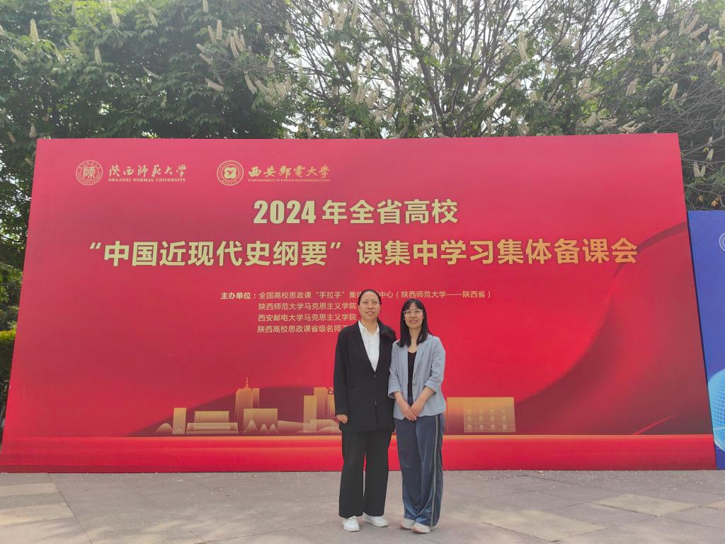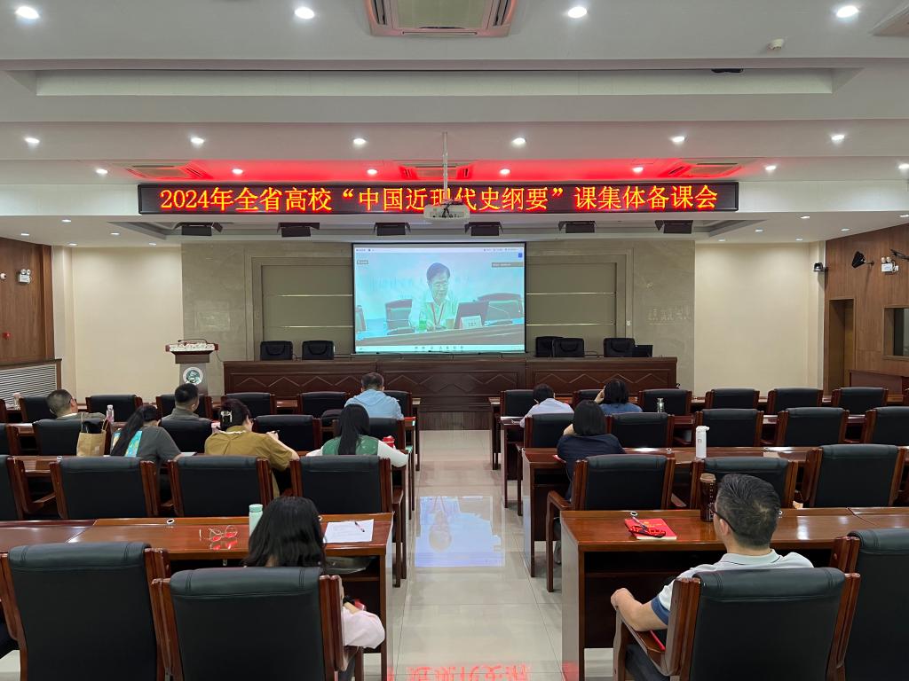 为深入学习贯彻党的二十大精神,进一步加强全省高校“中国近现代史纲要”课建设,推动我省“大思政课”建设高质量发展,4月27日,由全国高校思政课“手拉手”集体备课中心(陕西师范大学-陕西省)、陕西师范大学马克思主义学院、西安邮电大学马克思主义学院主办的2024年陕西省高校“中国近现代史纲要”课集中学习集体备课会在西安邮电大学举办。根据文件要求,万象城马院副院长张彩红和“纲要”教研室主任马菊霞现场参会学习,马院其余思政课教师在2号行政楼6楼报告厅线上同步观摩备课会直播。