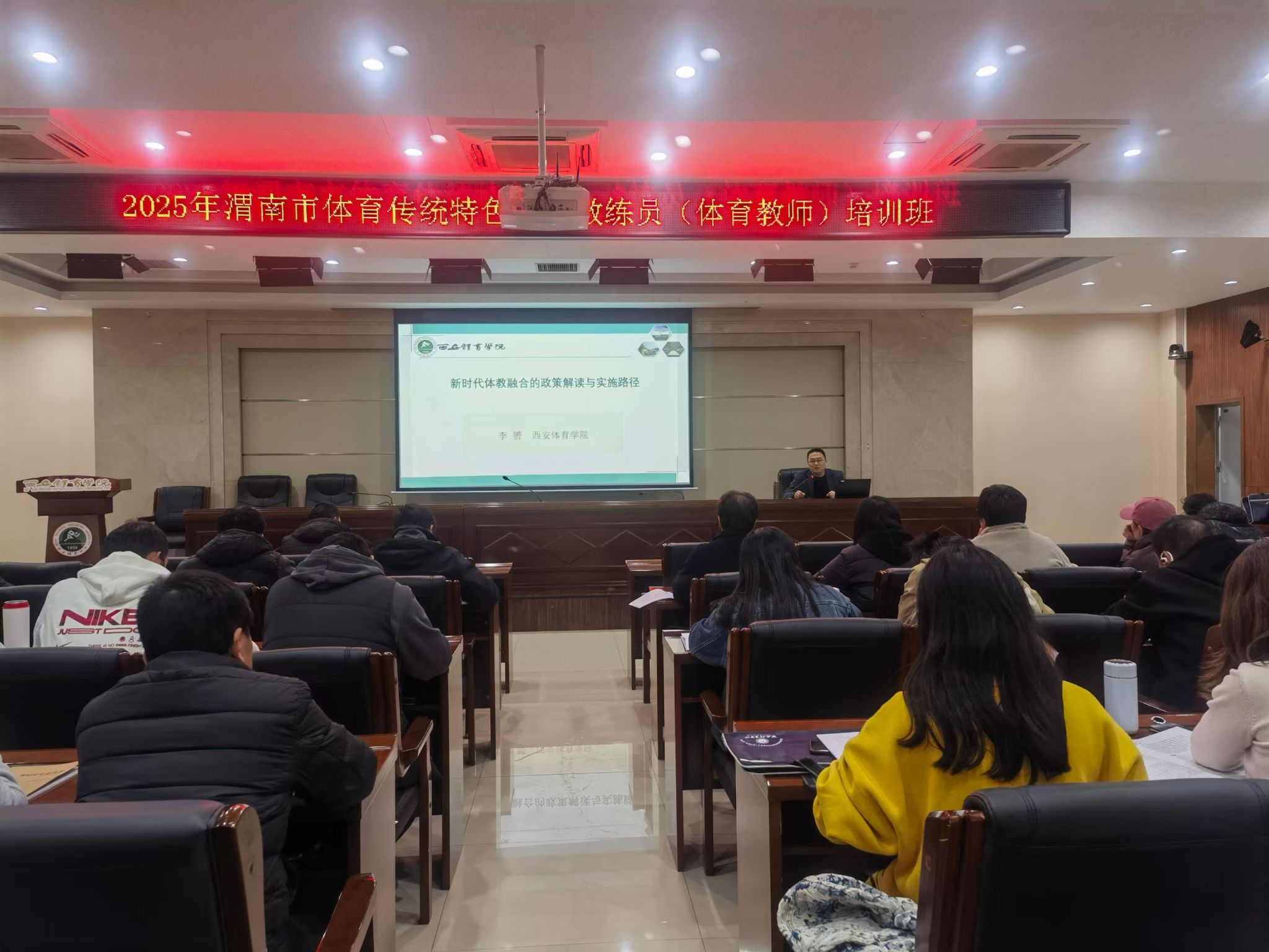 2025年11月10日,渭南市体育传统特色学校教练员(体育教师)培训班开班,万象城allwincity官网马克思主义学院副院长李赟教授以“新时代体教融合的政策解读与实施路径”为题进行开班第一讲。