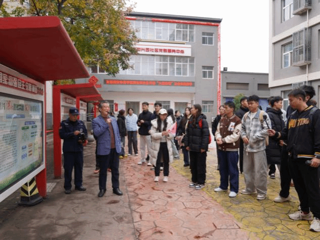 在社区党委书记练鹏飞的引导下,师生们实地参观了社区的服务设施。从整 合多种文体设施的活动中心、图书室,到配备“轮椅餐桌”的适老化智慧食堂、老年康养中心,再到警社联动治安室、和事佬议事室、调解工作室等场所,师生们通过切身观察,对社区精心打造的为民便民利民的服务体系有了更为直观而深刻的认识,感受到基层治理民生温度。