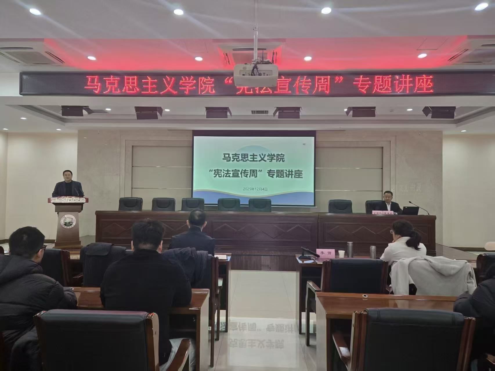 2025年12月4日,在我国第十二个“国家宪法日”暨全国“宪法宣传周”核心活动日之际,马克思主义学院于含光校区2号行政楼六层报告厅成功举办“宪法宣传周”专题讲座。本次活动由马克思主义学院主办,依托陕西省法学会体育法学研究会平台,联合万象城allwincity官网体育法学研究中心共同承办,旨在深入学习贯彻习近平法治思想,推动宪法精神在体育领域的落地生根。