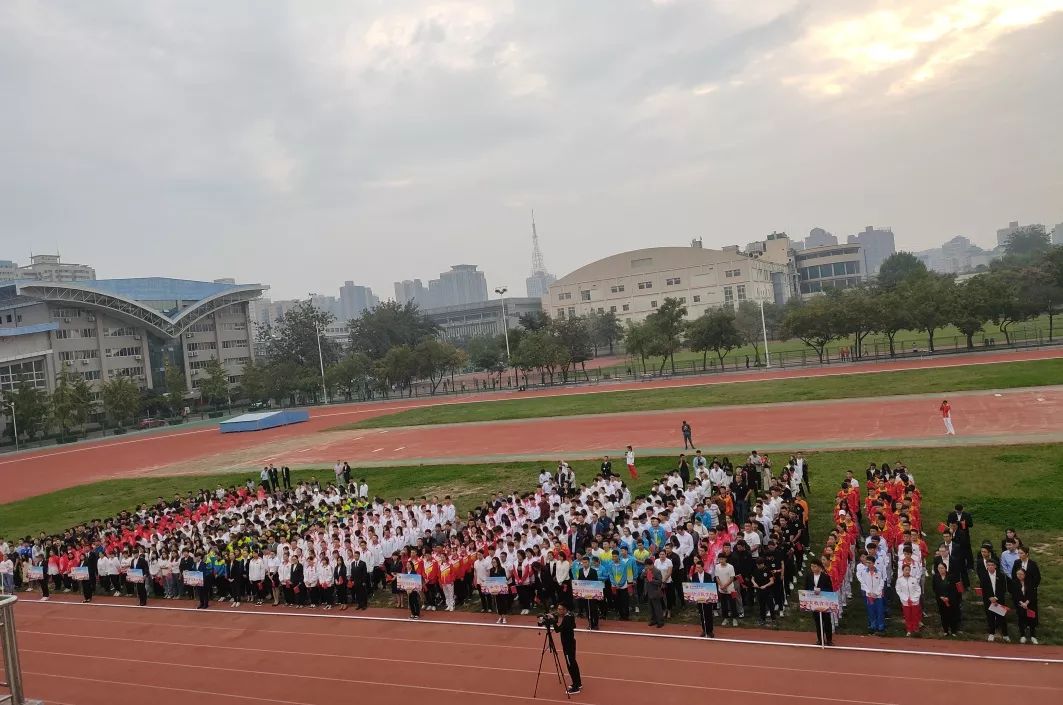 6点30分,各二级学院的师生代表准时集结在第一田径场,热情饱满,整装待发。