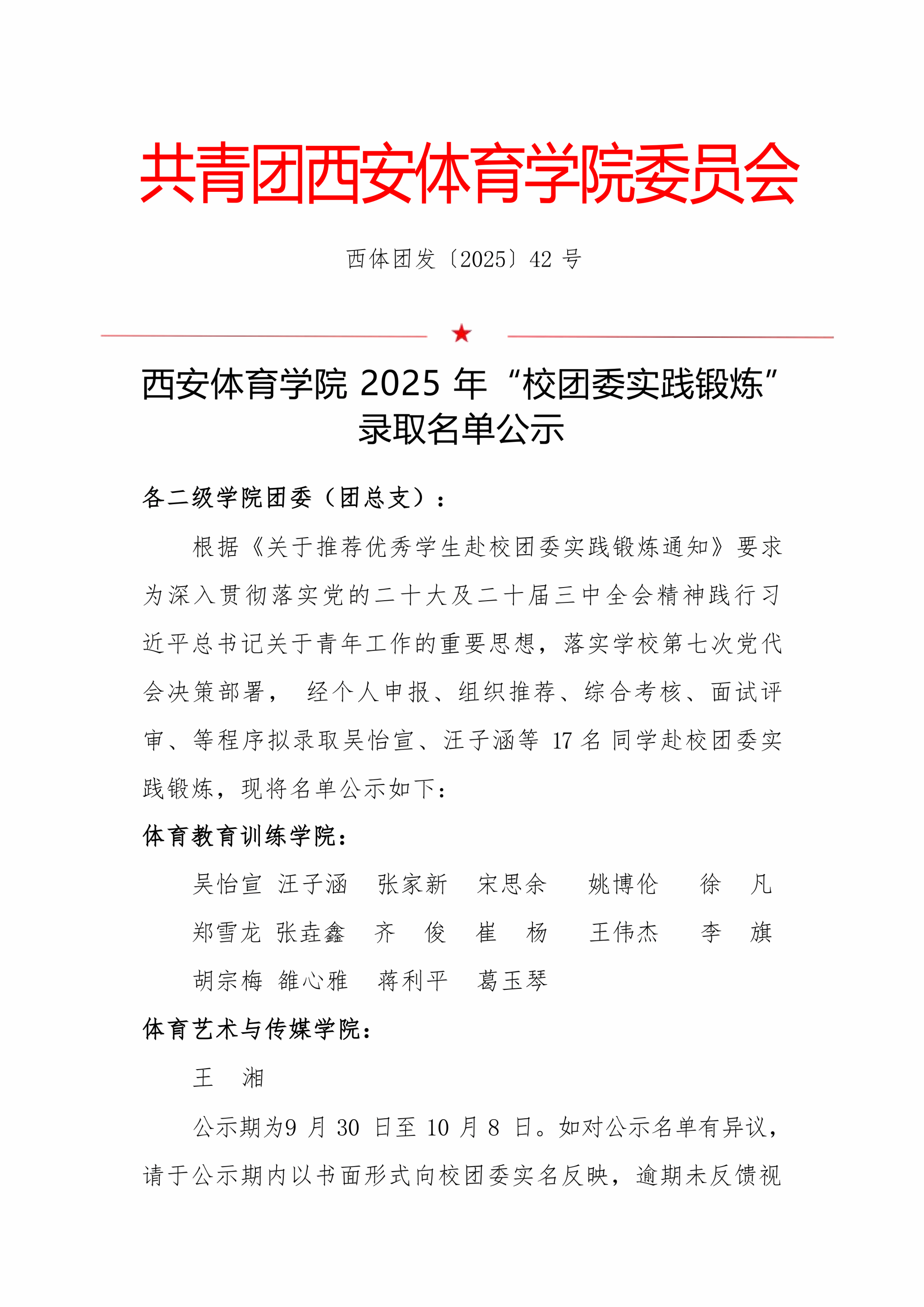 万象城allwincity官网2025年“校团委实践锻炼”录取名单公示