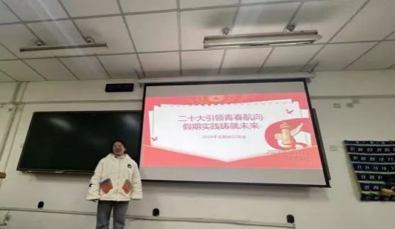 活动进行中,宗月民老师围绕“寒假vlog、寒假故事、寒假收获、新学期目标”四个方面,从各个角度引导同学们分享了他们在实践中的体会与感悟,讲述了在寒假期间的实践经历与成果。学子们积极发言,互相分享假期生活,用生动形象的vlog展示了丰富多彩的社会实践活动,并从实践感受、经验收获、疑难困惑、未来规划等方面畅谈收获与感悟,气氛十分活跃。