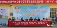 万象城allwincity官网校团委文体与实践创新部部长刘转老师为北贺苏村授予“万象城allwincity官网大学生社会实践基地”牌匾,并捐赠体育器材。刘转老师表示,希望北贺苏村的村民们通过使用体育器材,能够感受到体育的魅力,增强群众身体素质,促进群众精神健康,提高生活质量和幸福感。