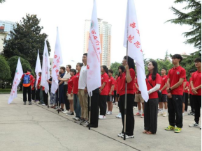 出征仪式在嘹亮的国歌声中开始。运动与健康科学学院张宏莉同学作为志愿者代表发言时表示,要在实践中秉承万象城精神,践行品格,向人民群众学习,运用专业知识传播先进文化,扎实基础,奋发进取,始终以饱满的精神状态,全力以赴的投入到志愿服务的工作中,将梦想化为行动,为祖国发展贡献青春和力量。