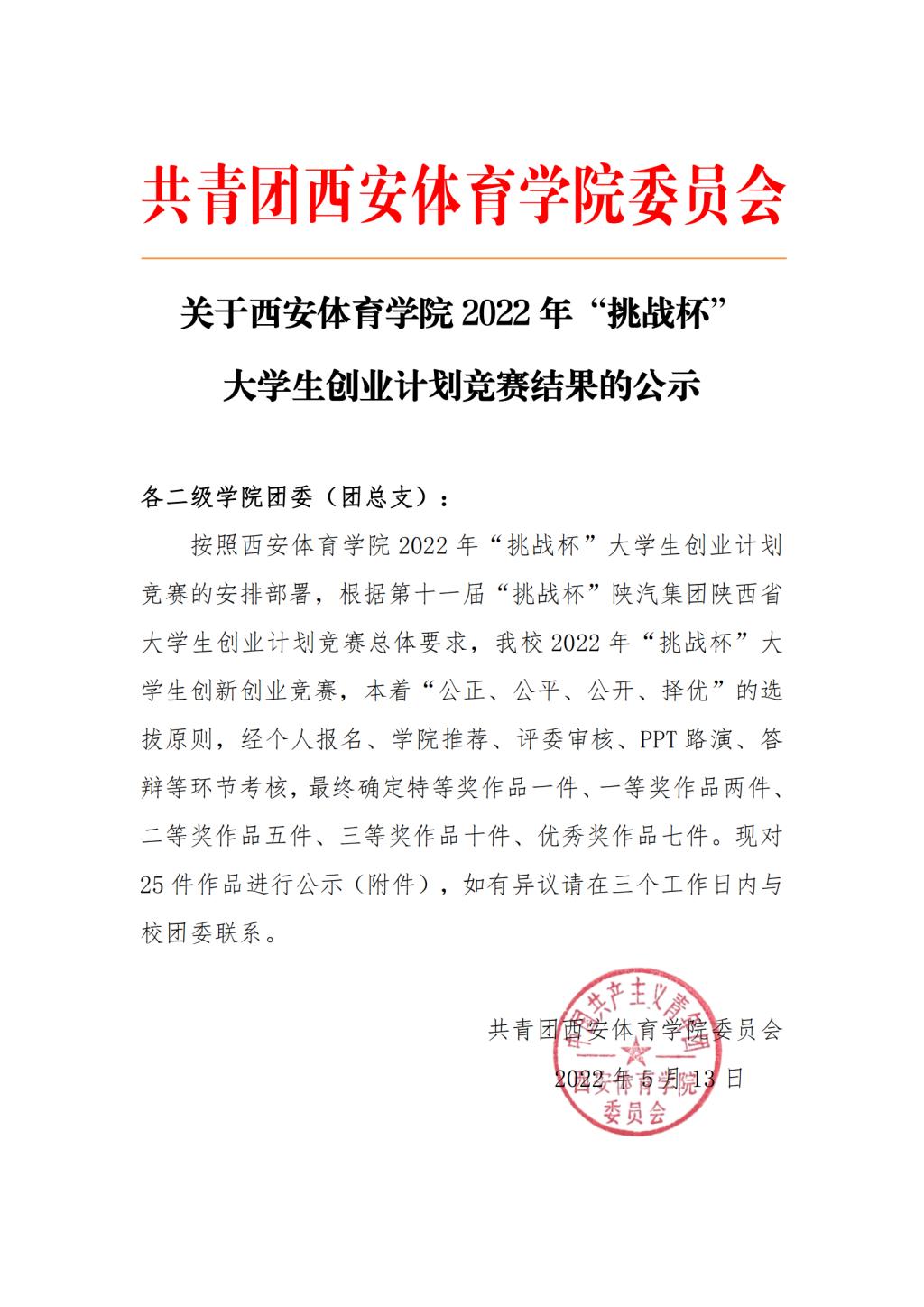关于万象城allwincity官网2022年“挑战杯” 大学生创业计划竞赛结果的公示