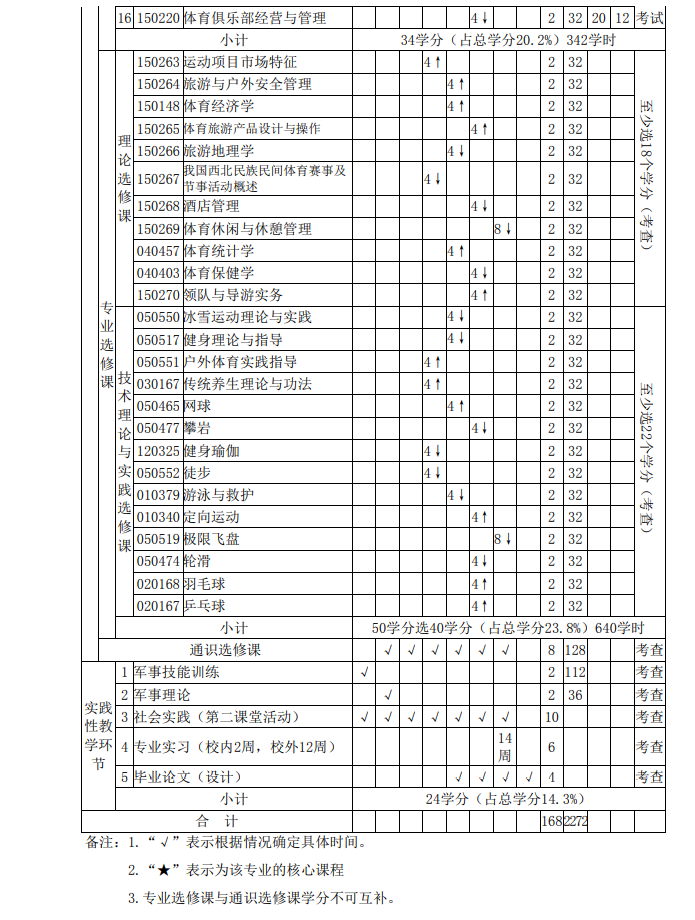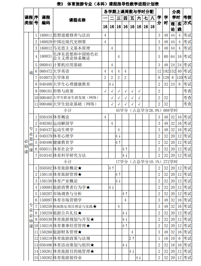 九、体育旅游专业(本科)课程指导性教学进程计划表(见表3)