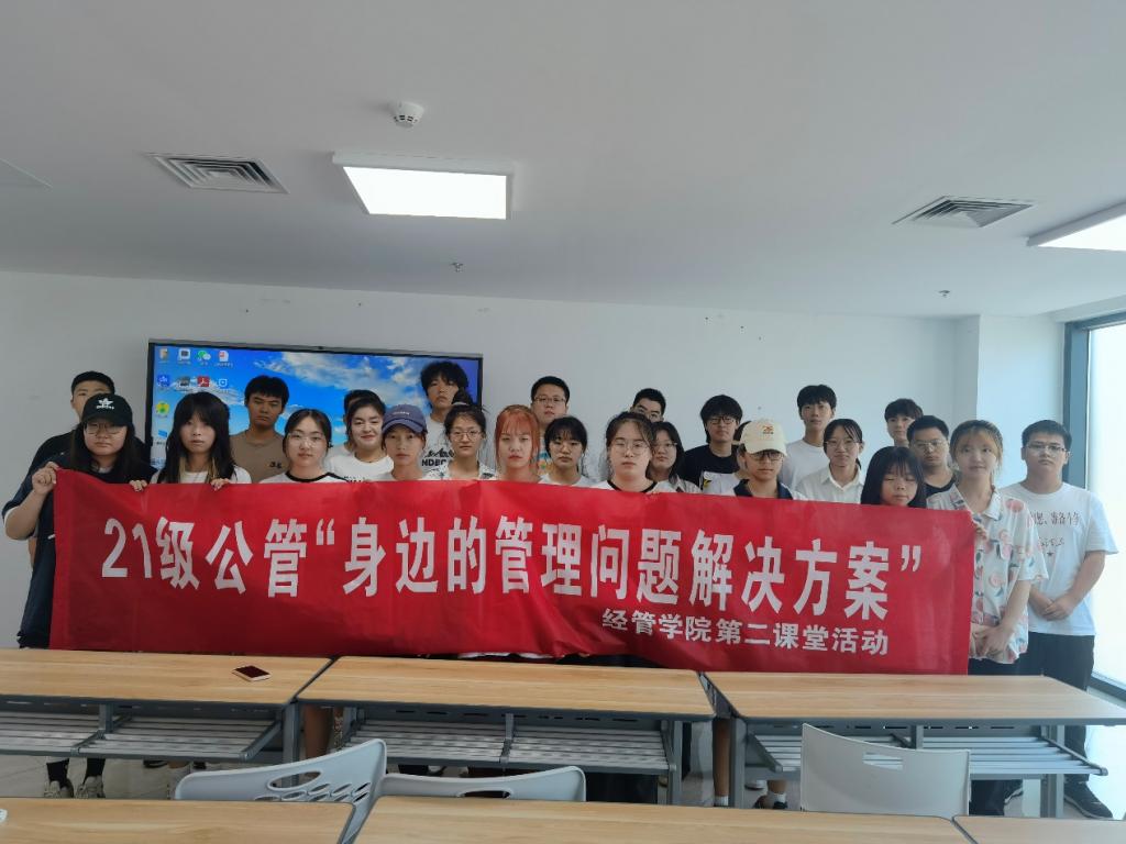 1、利用4月20日下午上课时间,公共事业管理2021级一班班长提前到教室准备道具,组织好学生参与第二课堂活动。
