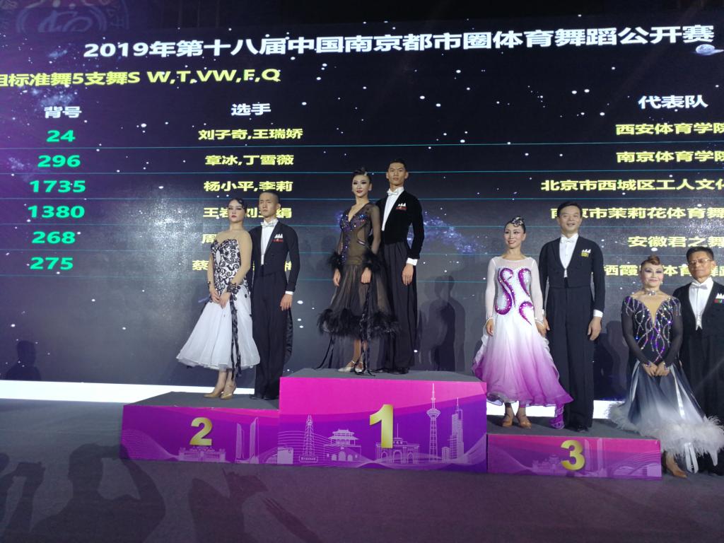 2019年10月26至27日在南京市龙江体育馆举办了中国·南京体育舞蹈公开赛暨第十八届南京都市圈体育舞蹈公开赛。本届赛事经中国体育舞蹈联合会(CDSF)批准,由南京市体育总会主办,南京市体育舞蹈运动协会承办,浦口区体育总会、秦淮区体育舞蹈运动协会协办,广州博润体育科技有限公司运营。