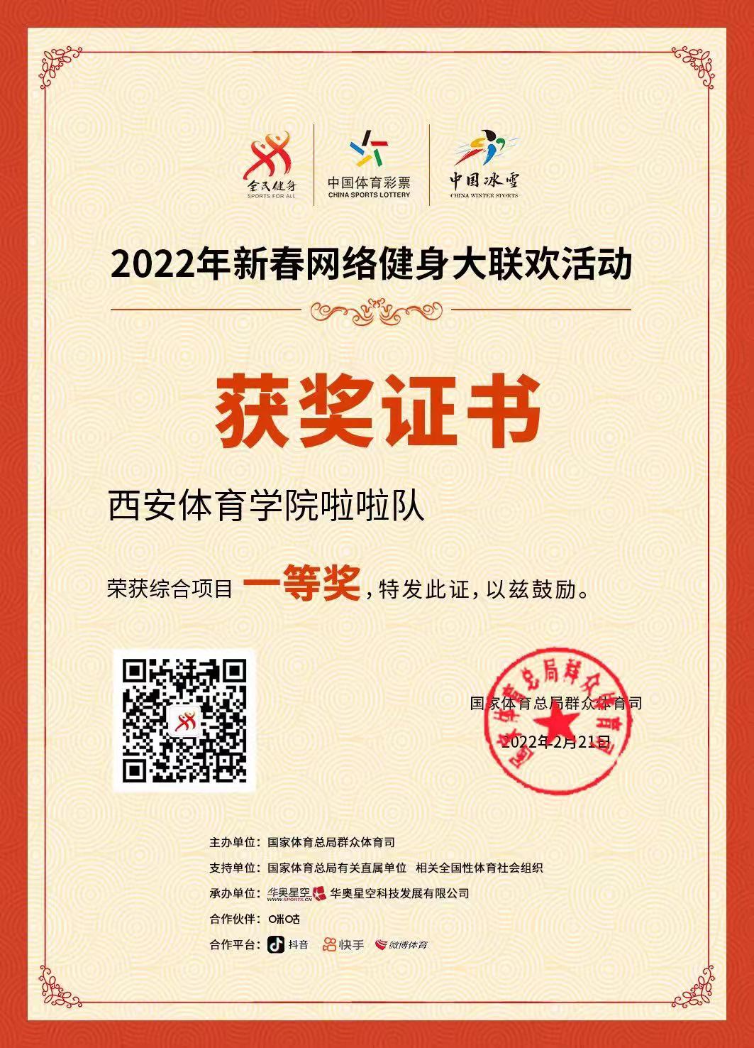我院师生在疫情期间创编了“冰雪啦啦操”,参加由国家体育总局群众体育司主办“为2022年北京冬奥会助力,为全民健身添彩”新春网络健身大联欢活动获得综合项目一等奖。