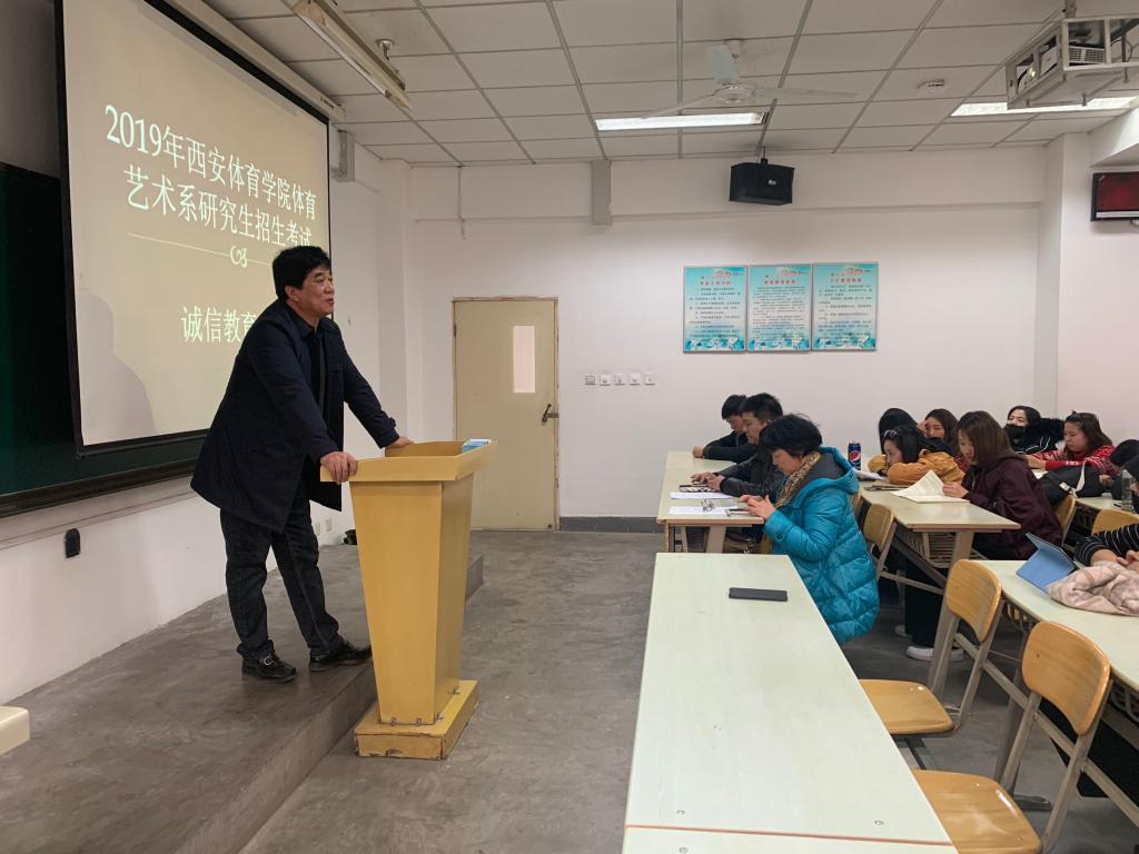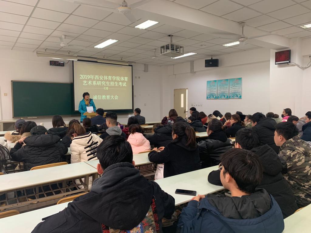 为引导2019年考研学生遵纪守法、诚信考试,体育艺术系于12月19日中午2:00时在教学楼312教室对系部考研学生集中进行诚信考试教育,扎实细致地做好考前考生诚信教育宣传工作。体育艺术系主任赵志伟,党总支书记李美霞,体育艺术系副主任杨占军。2015级辅导员及全体考研学生出席,会议由李美霞书记主持。