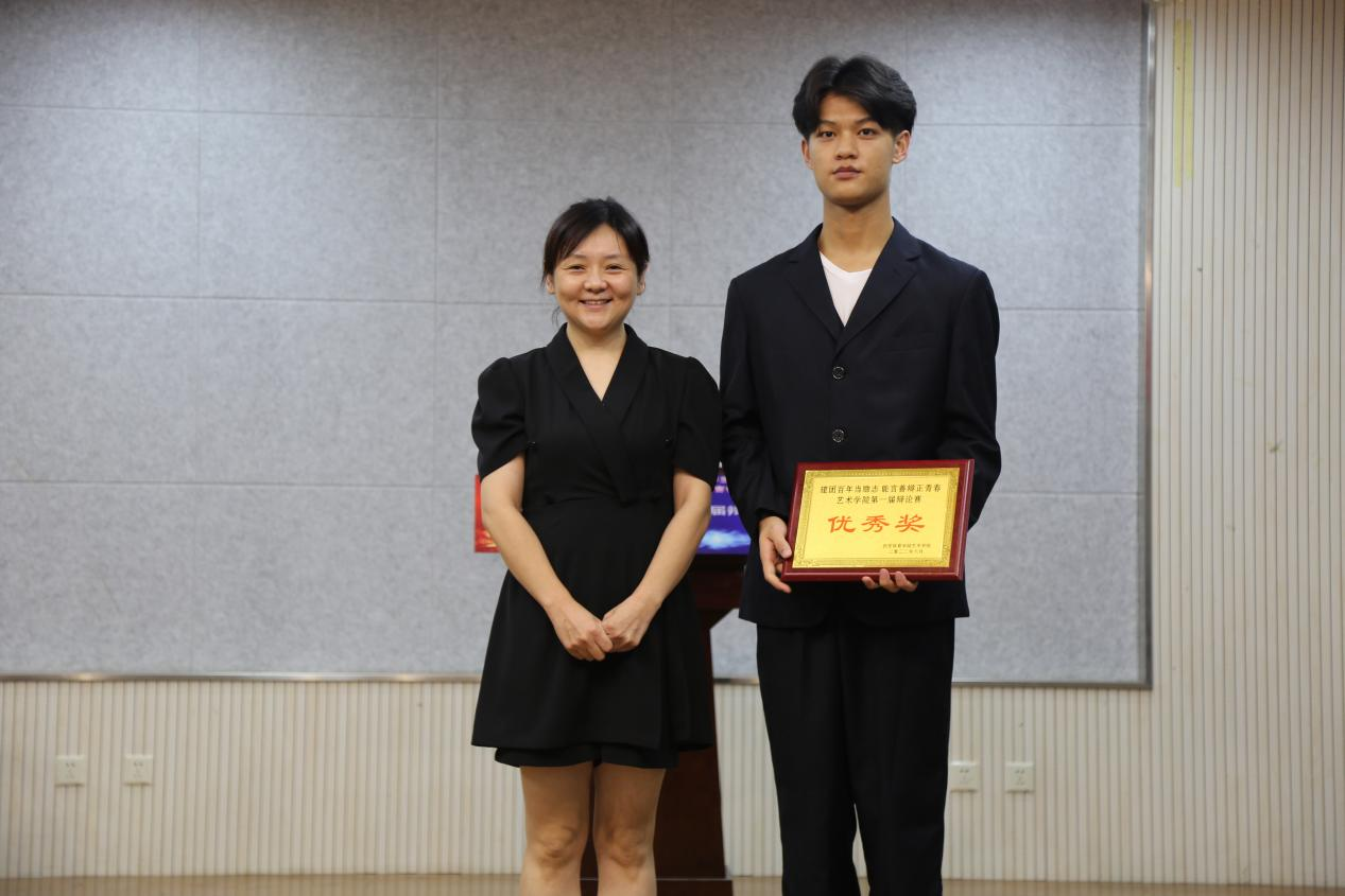 校团委书记熊辉老师为获得“最佳辩手”的获奖同学颁奖