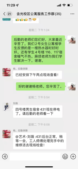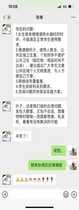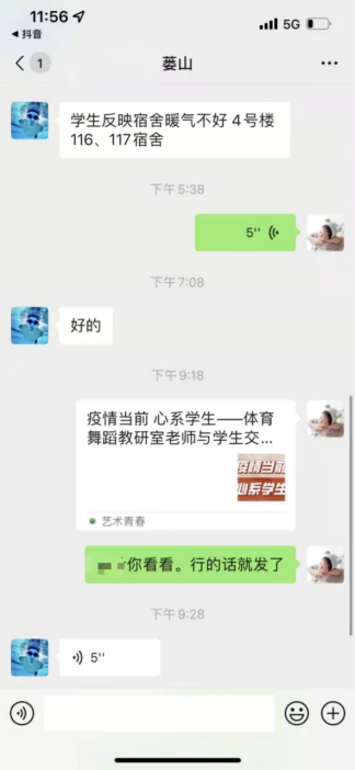 艺术学院学工办的老师们通过线上线下的方式与学生进行沟通联系,本着学生的事情无小事的原则,密切关注学生日常生活需求,倾听学生们提出的意见,尽一切可能提供帮助。同时学院党政领导班子也走进学生宿舍跟踪情况,切实了解同学们的生活情况,并想方法解决学生们提出的合理要求,鼓励学生们参加文体活动,加强体质锻炼。为了可以及时掌握学生的心理状况,学院为每个班级配备班主任保持沟通,以此来引导学生消除不安情绪,增强自我防病意识。艺术学院的举措使滞留的学生充分感受到学院爱和温暖,再次坚定了战胜疫情的信心和决心。