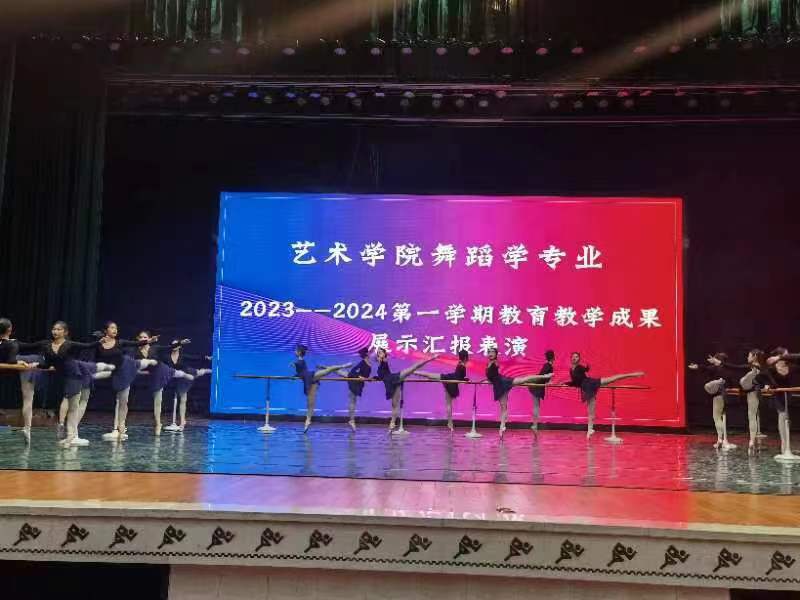 舞蹈学专业2023-2024学年第一学期教学展示汇报于2023年12月25-26日,由万象城allwincity官网艺术学院舞蹈教研室主办的“舞蹈学专业2023-2024学年第一学期教学展示汇报”活动在艺术馆三楼圆满完成。舞蹈学2021级、2022级及2023级全体同学参加了此次汇报,汇报内容以民族民间舞、芭蕾舞、古典舞、现代舞四门课程为主,从教室到舞台,舞蹈教研室为学生搭建了一个锻炼和展示的平台,也是对同学们一学期学习成果的检验。通过此次展示汇报,积累创作经验的同时,还能从中发现教学中的不足,为今后教学质量的提高提供经验,从而推进舞蹈教育的高质量发展。
