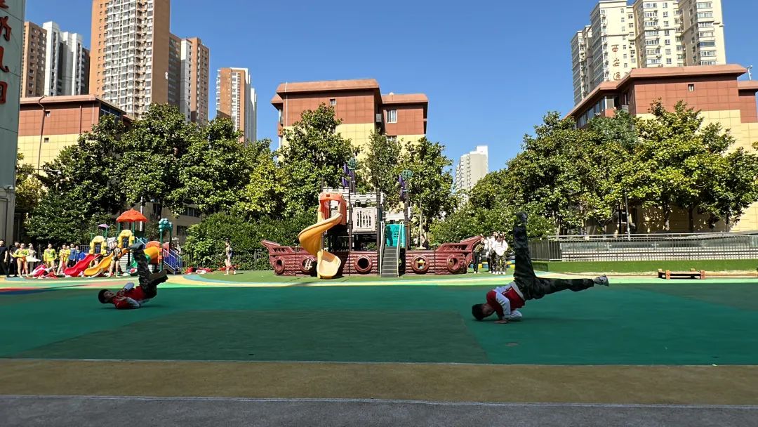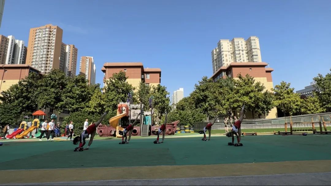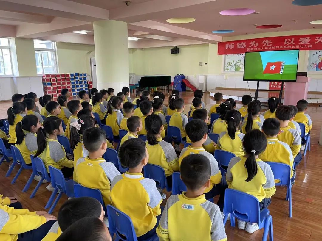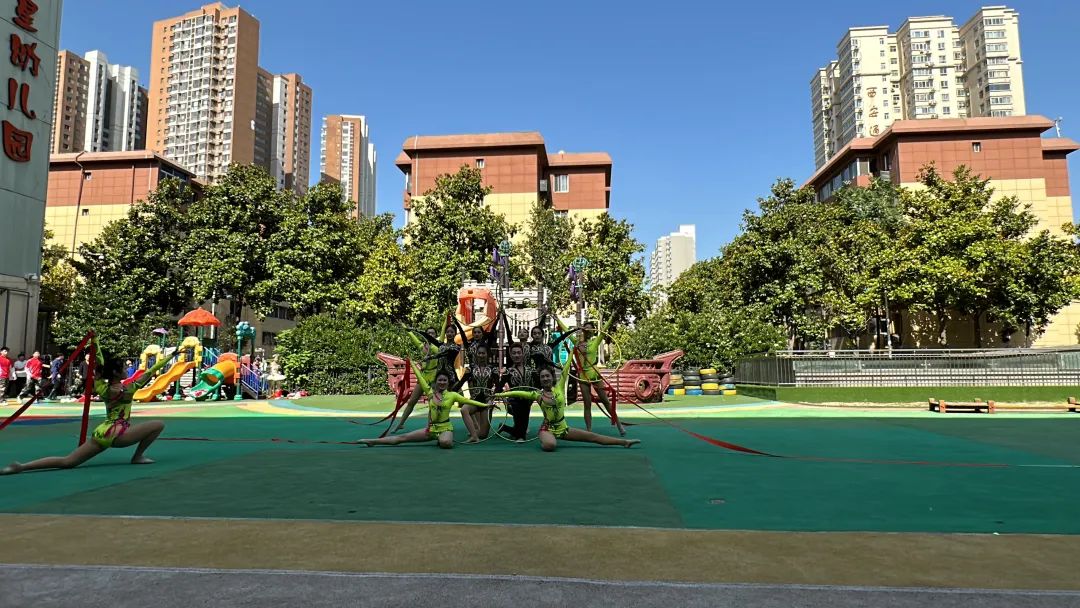 艺术学院大学生体育艺术表演团为五星幼儿园的小朋友们带来了精彩的体育艺术表演,用红色歌曲与排舞结合的形式,讴歌党的领导、讴歌社会主义新时代,营造浓厚的主题学习氛围,同时进一步促进红色校园体育文化推广,深入开展体教融合。