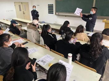 活动中,红缨路派出所民警们结合实际情况及身边案例,向同学们讲解了各类电信网络诈骗的手段和防骗技巧