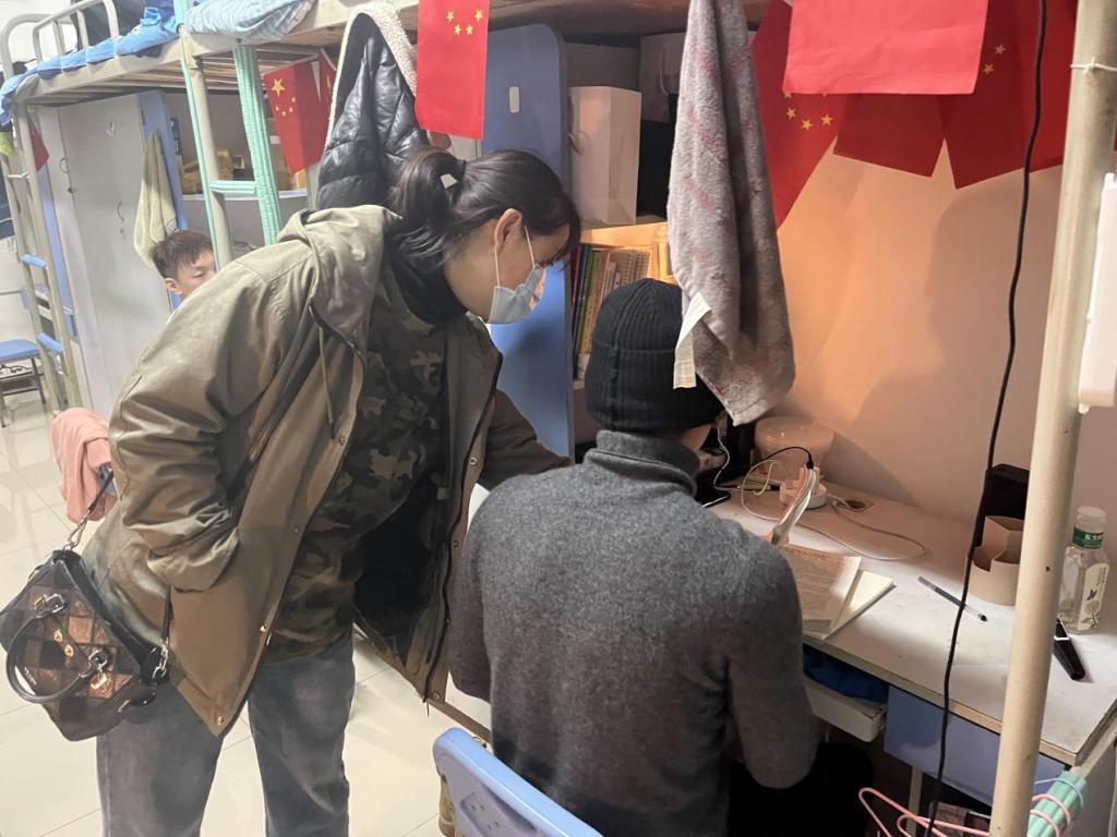 丁书记与赵老师走访了部分宿舍,在走访中,老师们十分关心学生的住宿安全和日常生活,同学生亲切交谈,询问同学们的学习、生活情况,并叮嘱他们要提高安全防范意识,禁止使用违规电器,注意安全用电。丁书记强调,在新冠疫情期间同学们更要做好个人防护,保持室内卫生的整洁干净,共同营造温馨的寝室氛围。