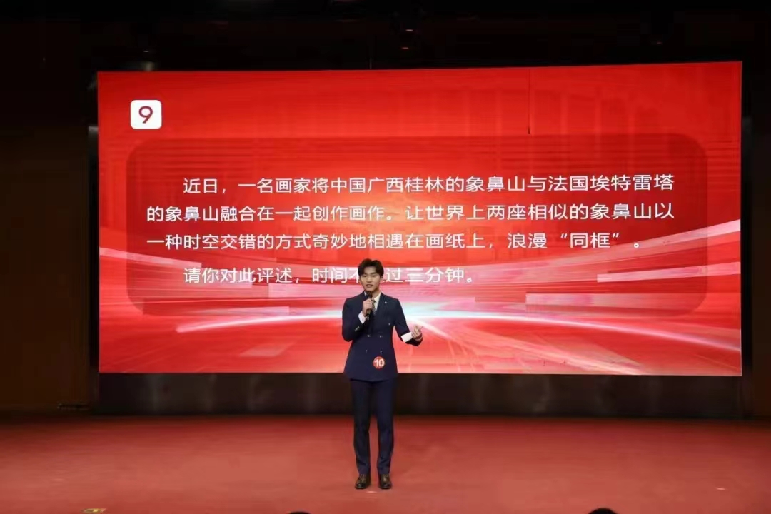 531日的决赛中,陈嘉豪、孙郁欣两位同学展现出非常鲜明的个人风格。在即兴评述环节,选取独特的视角,条理分明的阐述观点。在辩论环节,面对现场抽题直接辩论的残酷赛制,做到紧抓重点、逻辑清晰,展现出我院学生良好的思辨力。在情景演绎环节,孙郁欣立足大赛主题,把武术与中国传统文化相结合,用有声语言生动诠释了武术精神和家国情怀;陈嘉豪通过话剧的形式演绎了对革命先辈陈延年崇高的敬意与深深的怀念。最终,孙郁欣以全场第二名92.83分获得二等奖、陈嘉豪同学以91.50分获得三等奖。