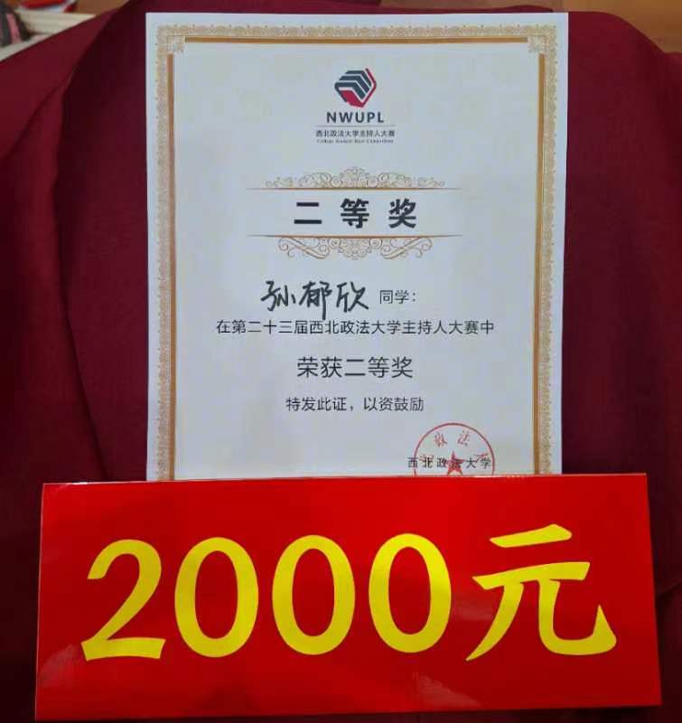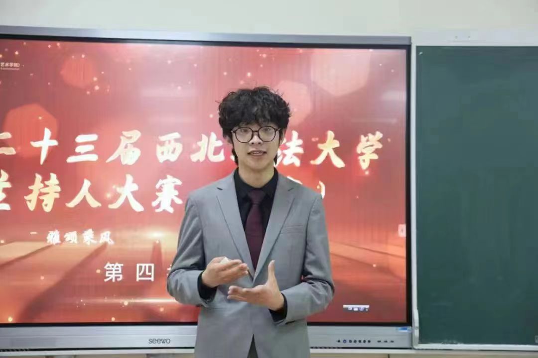 雅颂乘风,新声启梦,为深入学习贯彻习近平新时代中国特色社会主义思想,传承弘扬中华优秀传统文化,助力青年学子勇担新时代的文化使命,518日至31日,历时半个月的第二十三届西北政法大学主持人大赛圆满落幕。我院共选派共11人参赛,其中4人进入复赛,2人闯入决赛。最终,我院2023级学生孙郁欣获得二等奖、陈嘉豪获得三等奖。