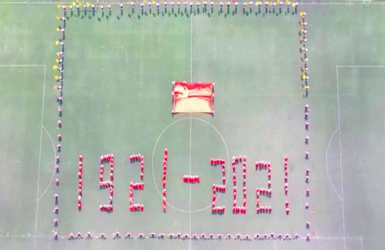 在中国共产党百年华诞来临之际,为隆重庆祝中国共产党成立100周年,回顾党的光辉历程,讴歌党的丰功伟绩,艺术学院操舞教研室苏珍珍老师带领艺术学院近300名学生,以文体表演的形式,编排了一场时长7分01秒的大型团体操表演——《党旗下的誓言》。