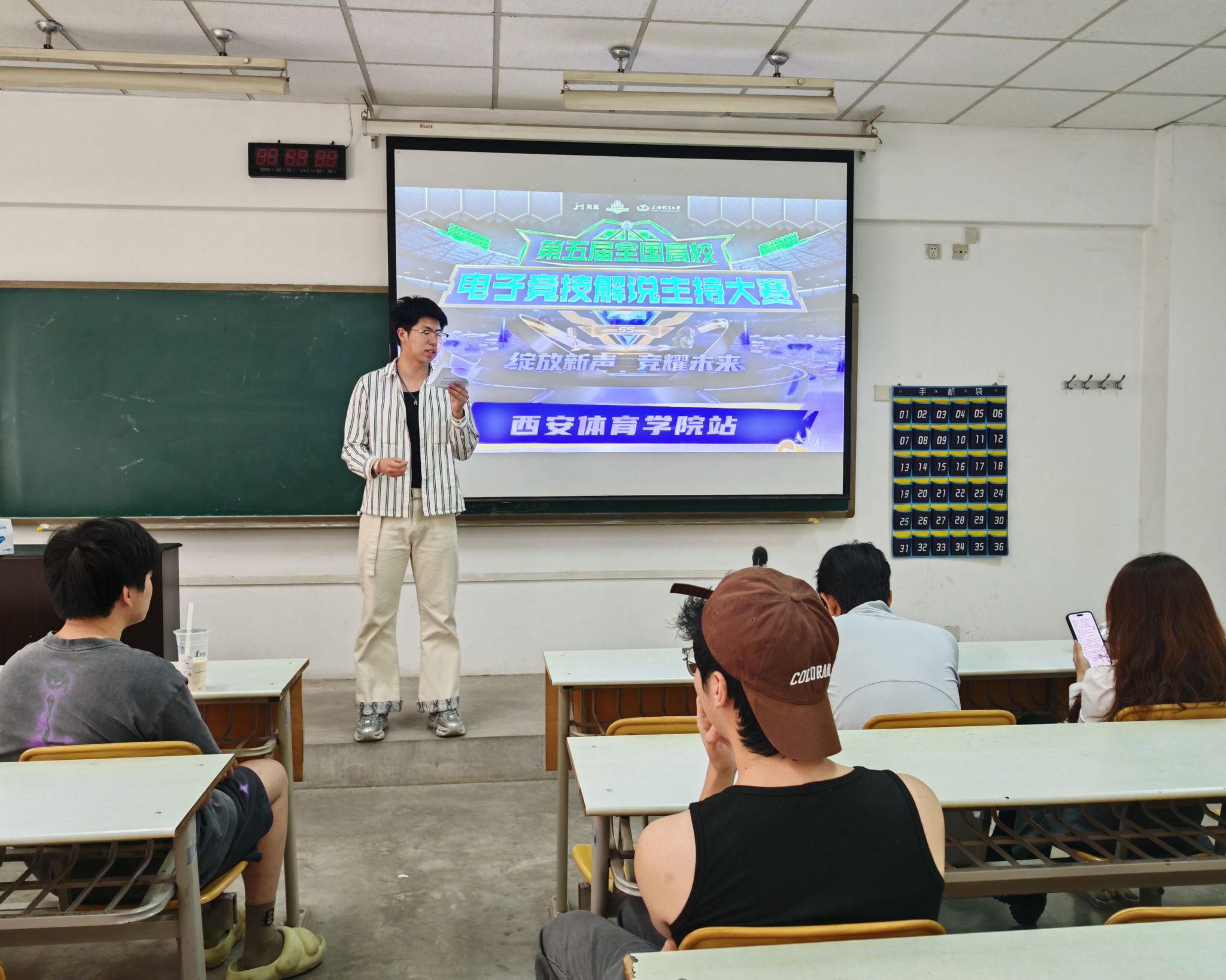 本次大赛采用“高校邀请海选+外卡站海选”相结合的参赛方式。作为受邀高校,万象城站海选赛于4月18日13:00通过腾讯会议线上开赛,并在竞麦教育视频号同步直播。尽管形式为线上海选,选手们仍以声音为剑,以热爱为盾,在虚拟舞台上展开激烈角逐。评委团从语言表达、专业知识储备、临场应变力三大维度严格评审,最终,陈宇航、李卓鹏、聂诗蕊三位选手凭借出色的表现成功晋级。