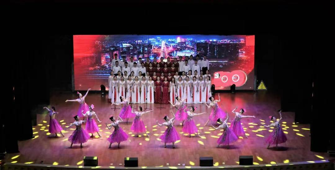 同学们通过舞蹈作品展现中国共产党从诞生到带领中国革命取得胜利、从建设新中国到全面摆脱贫困、从奋进新时代到开启新征程的百年奋斗史的深沉力量与坚定信仰,同学们吃苦耐劳,利用课余时间积极配合,认真排练,用饱满的姿态唱响党的赞歌,60名同学与老师共同给大家带来了一场视觉与听觉的盛宴。