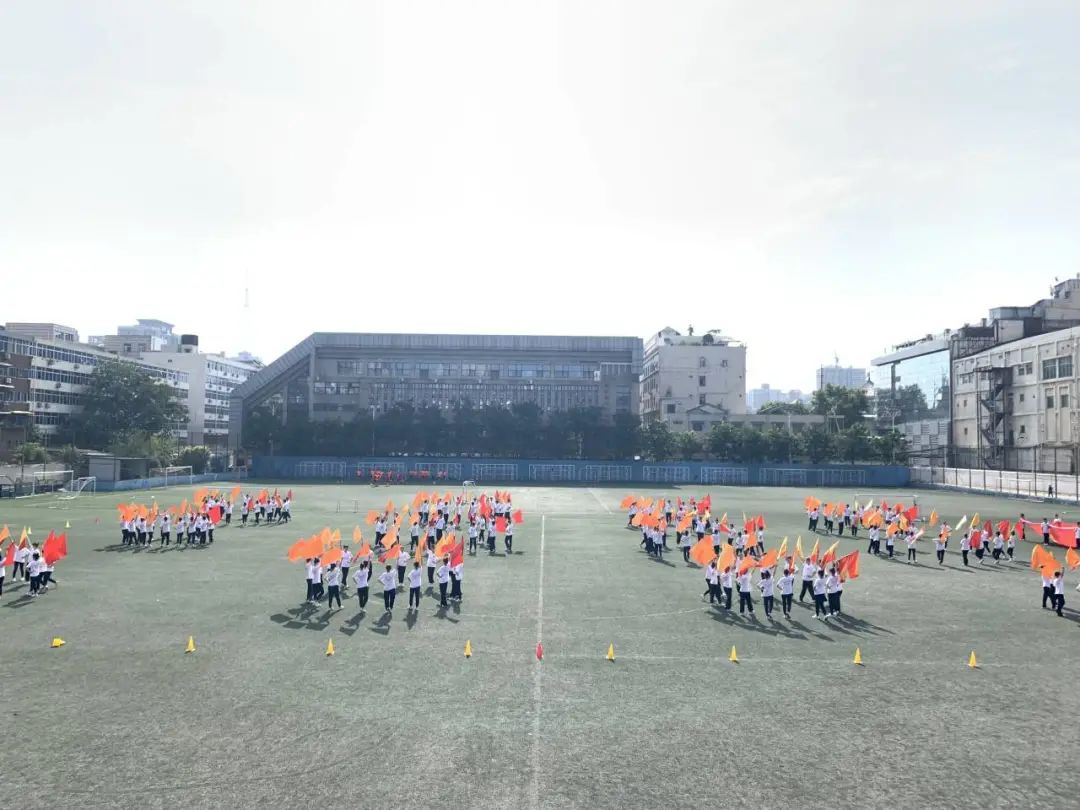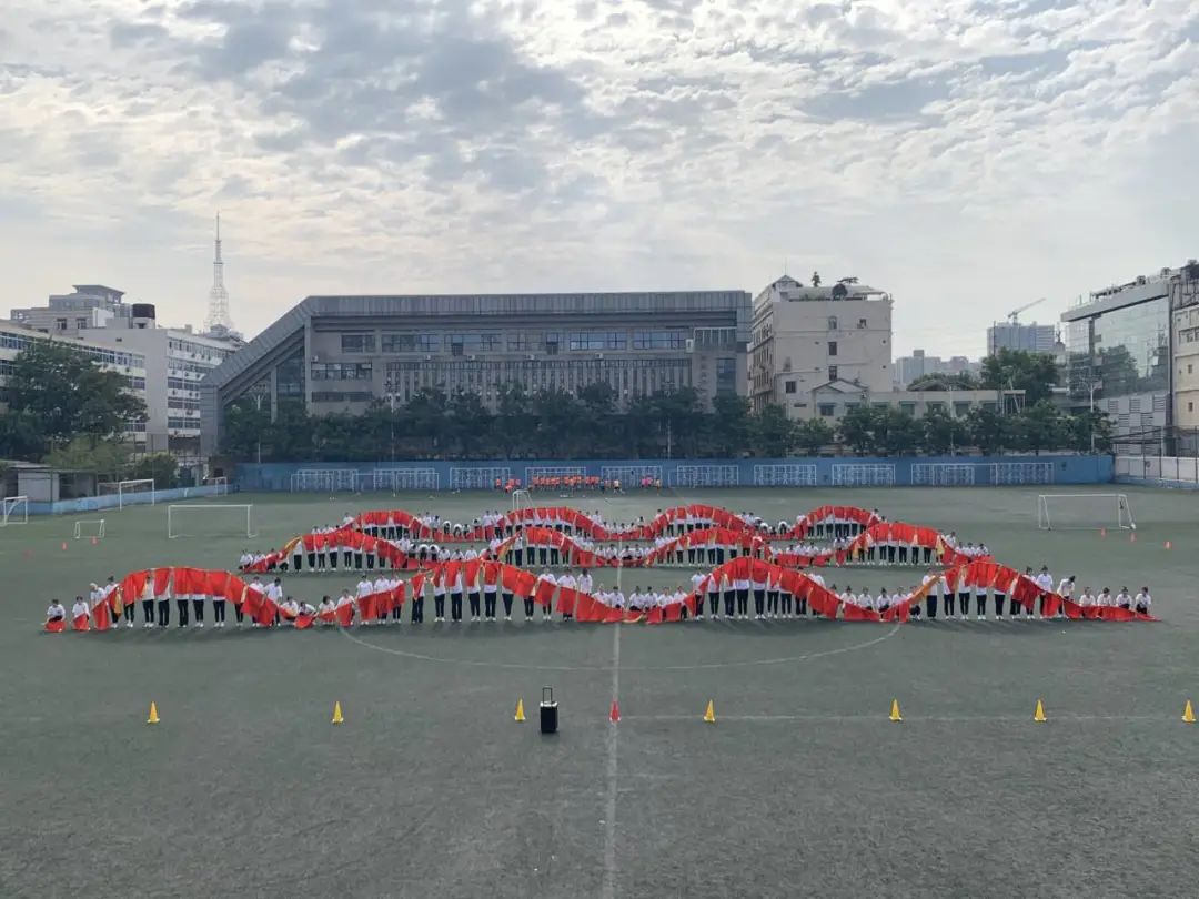 此次大型团体操《党旗下的誓言》用不断变化的圆形、波浪、菱形等经典造型来展现百年奋斗路的艰辛,用红船造型展示中国革命精神之源的红船精神来激励和鼓舞全体师生坚定理想、百折不挠。