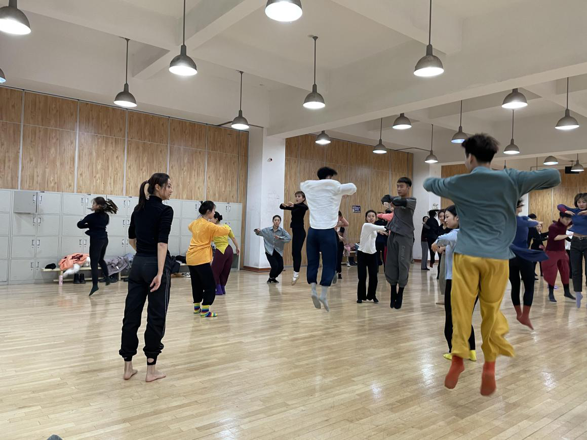 当日下午,石老师为同学们带来了一场身体的舞动对话——《现代舞身体技法》。同学们在教室里跟随石老师的身体自由地舞动,用身体去接触地板,参与和对话肢体空间。同学通过工作坊的学习,切实地感受到了现代舞的魅力。